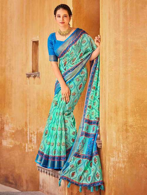 women printed bordered saree with blouse
