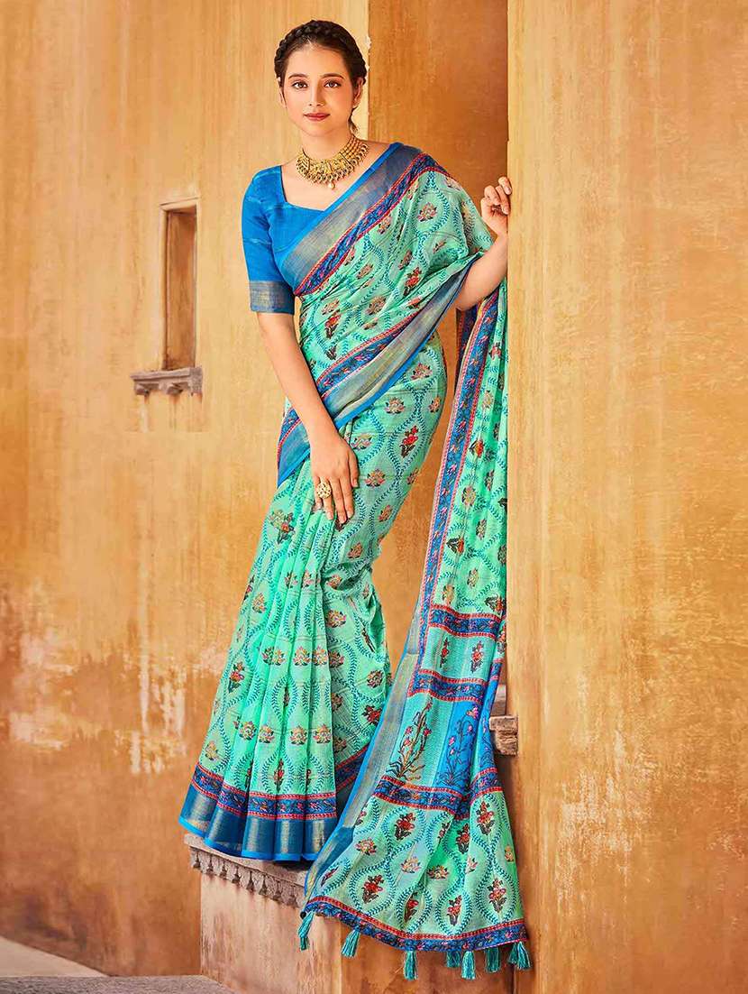 women printed bordered saree with blouse - 21722739 - Very Small Image - 1