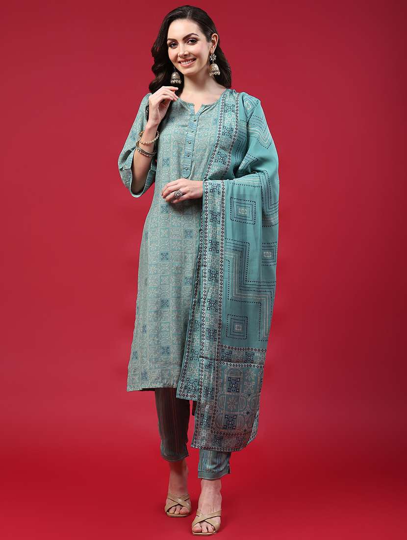 - Find gorgeous sets of ethnic wears in trending designs in sea green colors suitable for casual wear of occasions.