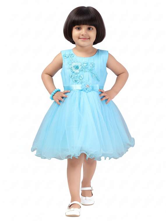 - » kids solid with work round neck dress