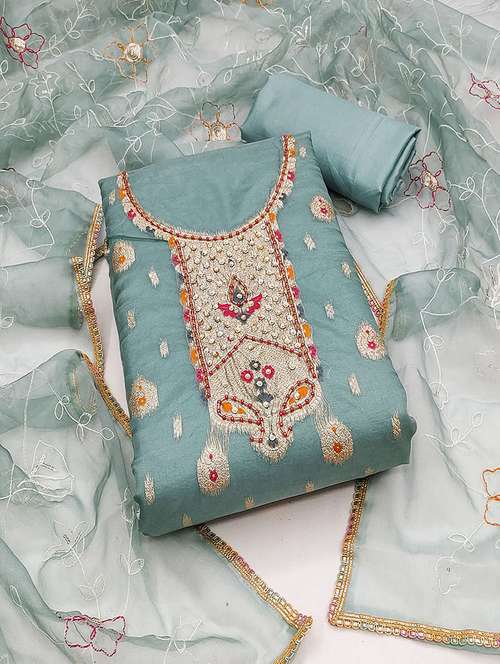- Look ultra gorgeous in unstitched suits from Lilots and grab these beautiful suits in turquoise colour.