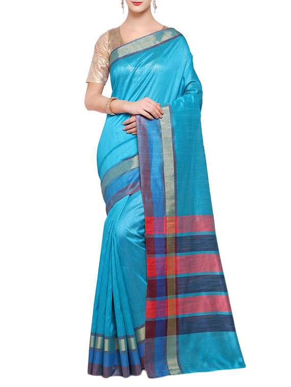 blue silk bordered saree with blouse