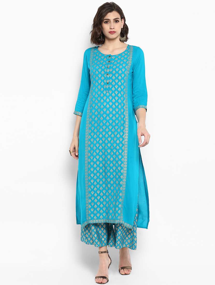 foil printed kurta with palazzo set - 15629903 - Very Small Image - 1