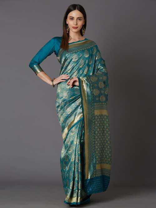 women's self design green colored saree with blouse - 17610356 - Very Small Image - 1