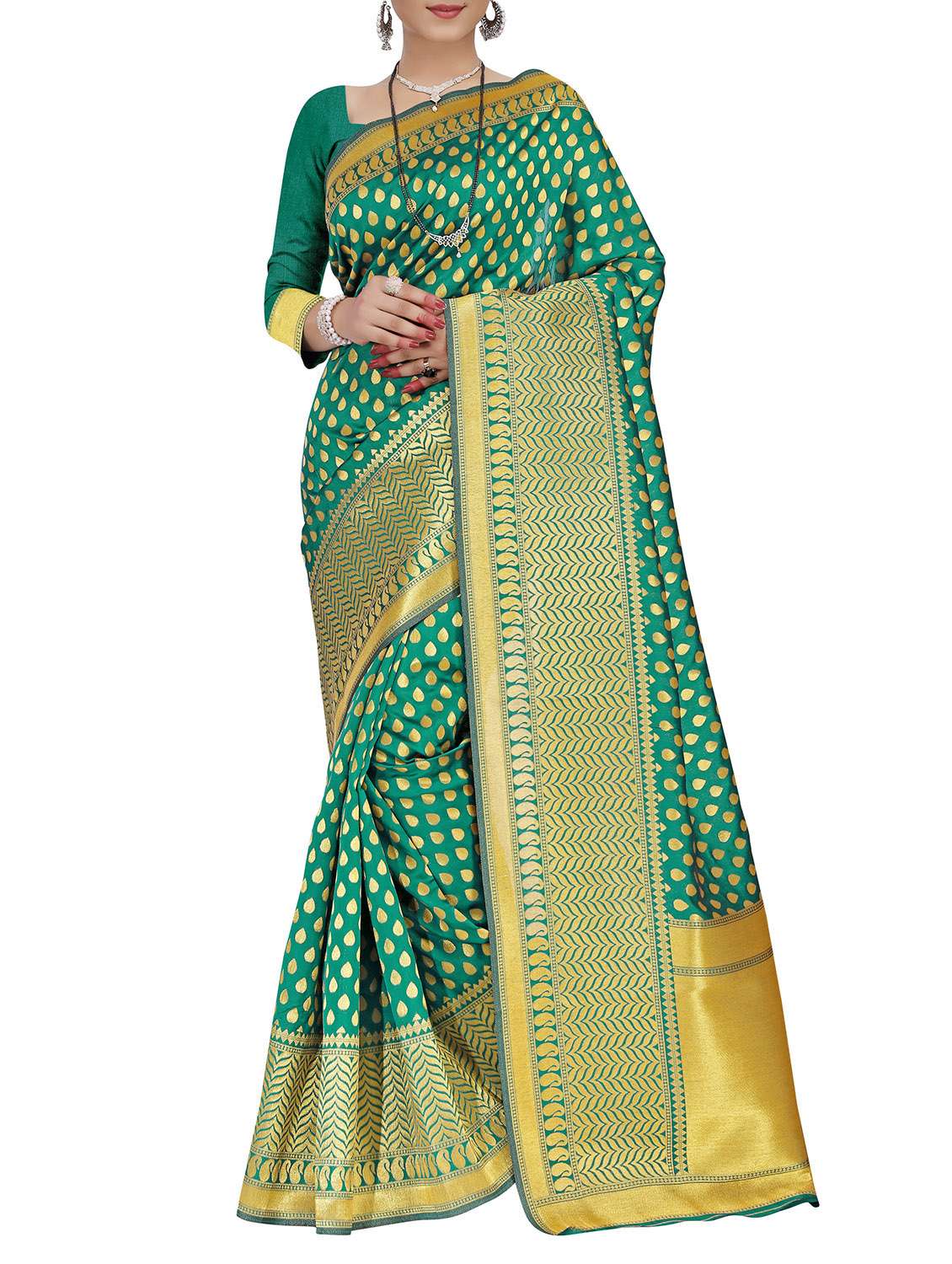 turquoise silk blend banarasi saree with blouse - 15086167 - Very Small Image - 1
