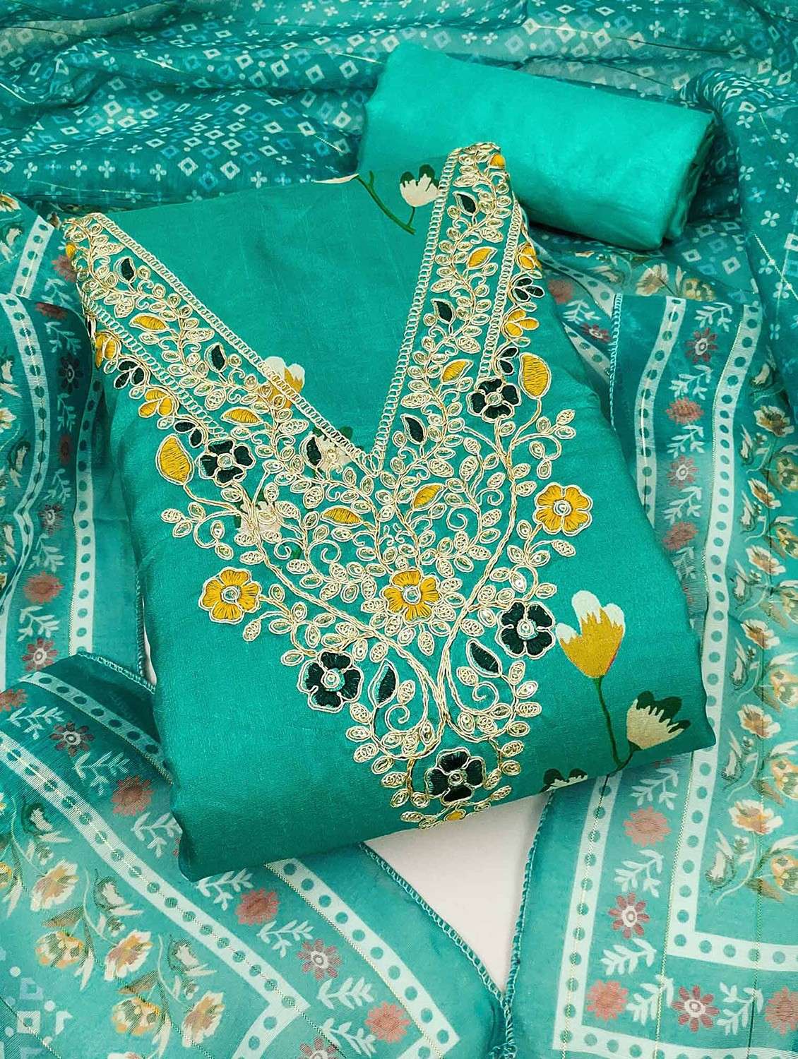 - Look ultra gorgeous in unstitched suits from Peachmode and grab these beautiful suits in sea green colour.