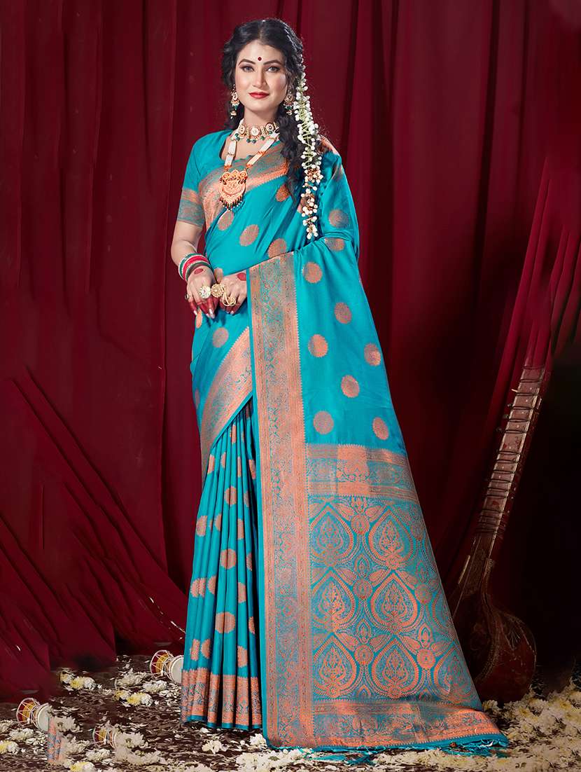 - » turquoise self design banarasi saree