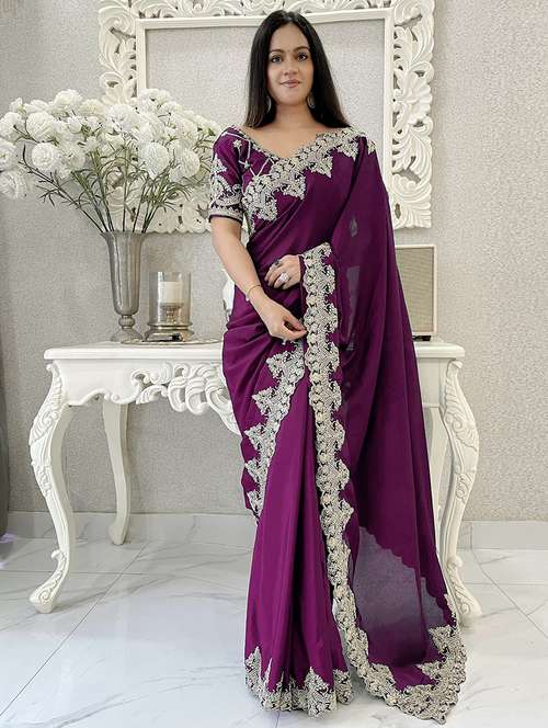 Vairagee Chinon Silk Embroidery Saree & Mono Banglory Blouse