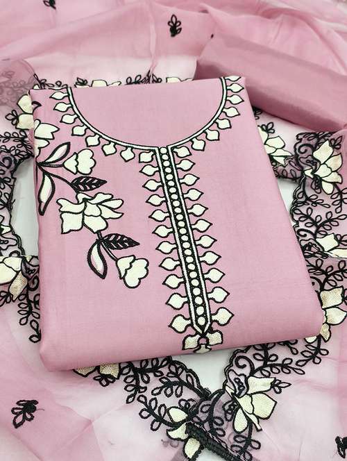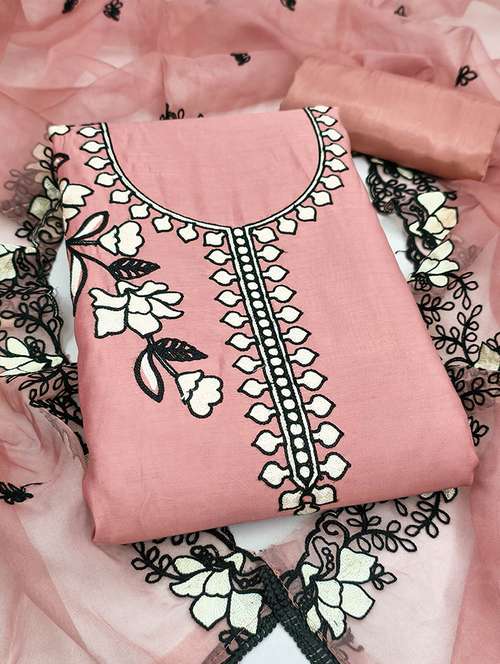 women solid with work embroidered unstitched suit set