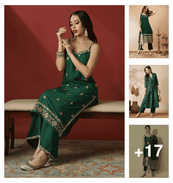women solid with work three quarter sleeve kurta pant with dupatta set