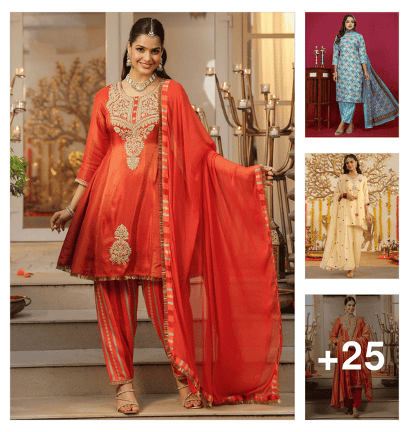 women embroidered three quarter sleeve kurta salwar with dupatta set