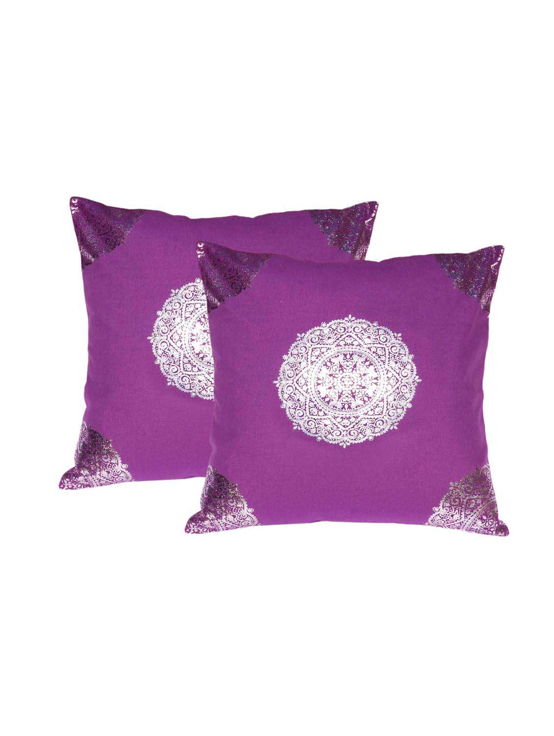 - » lushomes violet cushion covers with silver foil print (pack of 2)