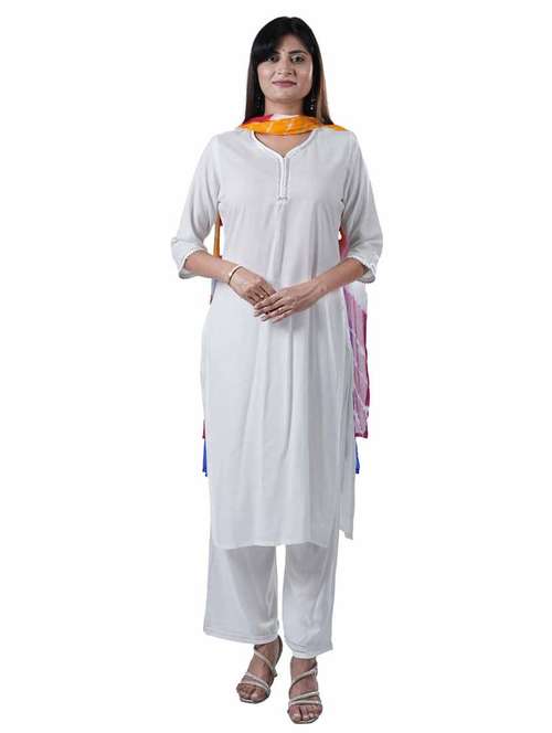women printed three quarter sleeve kurta palazzo with dupatta set