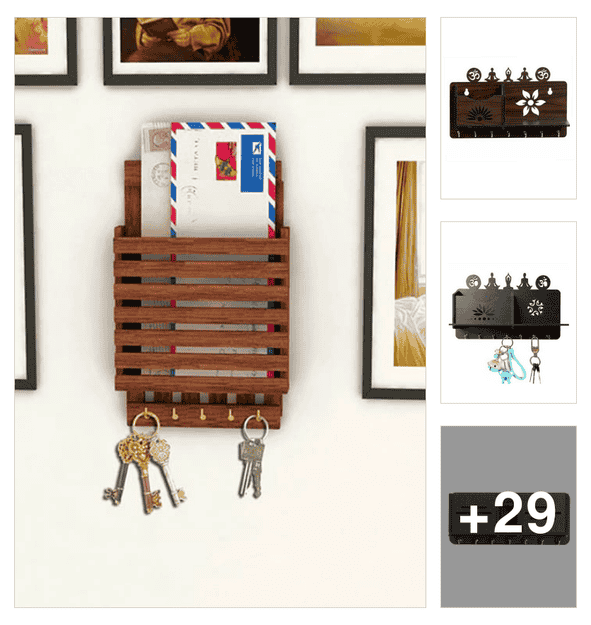wooden hut shape wall decor key holder ( black, 7 x 8 inch )