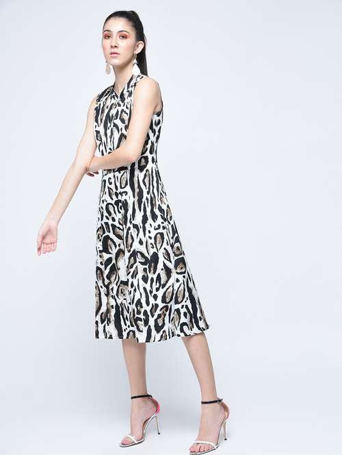 - » placket detailed animal print dress