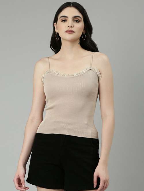 - Opt for this top made up of acrylic material and get it in a varied neck design.