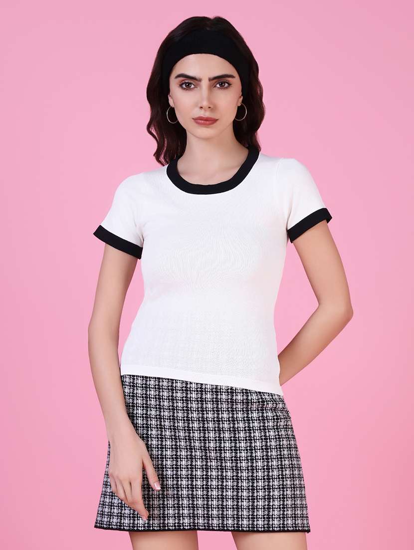 - » women white color block regular top