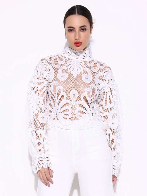 women lace deatiled puff sleeves regular top - 21643414 -  Standard Image - 1 women lace deatiled puff sleeves regular top - 21643414 -  Zoom Image - 1