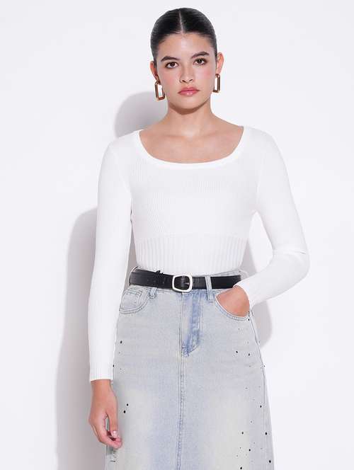 - » women white solid long sleeve regular top