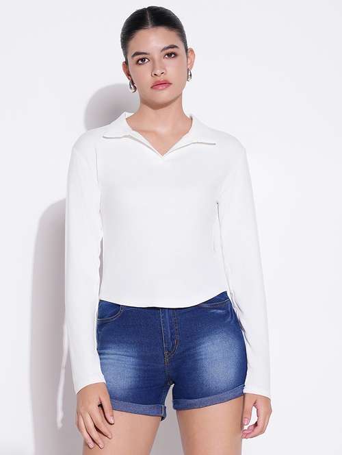 - » women solid collared long sleeves top