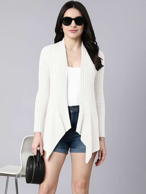 - » women white solid long sleeve asymmetric shrug