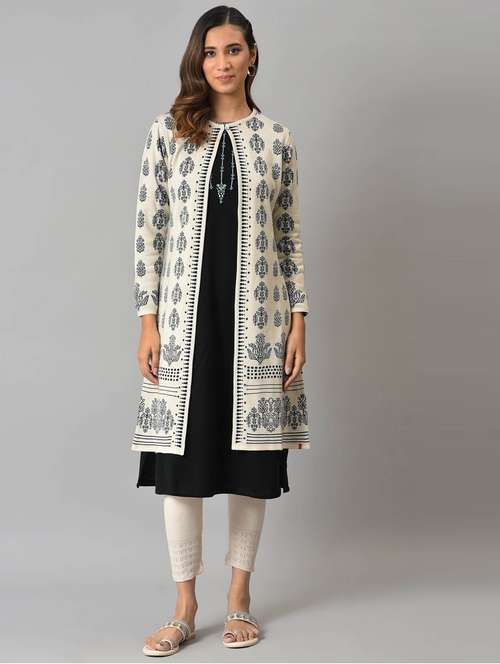 ecru floral printed reversible shrug