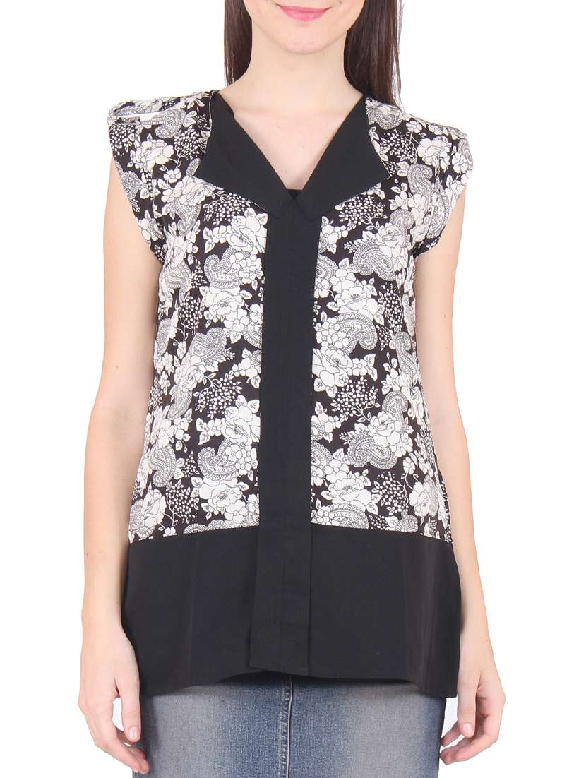 - » white and black printed top
