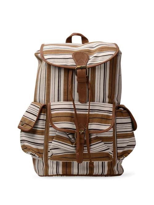 white and brown canvas backpack