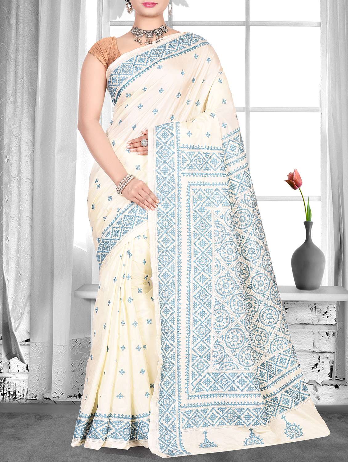 floral embroidered saree with blouse - 15929490 - Very Small Image - 1
