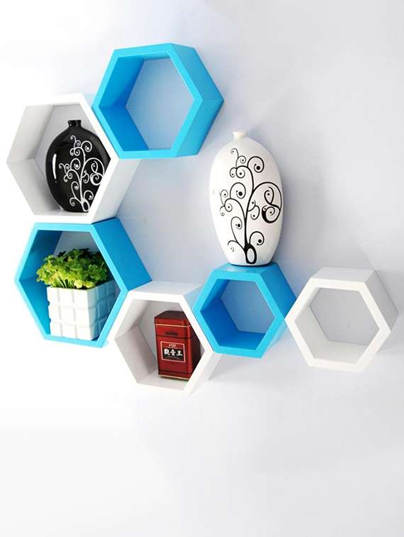 - » home deco hexagon shape storage wall shelves set of 6