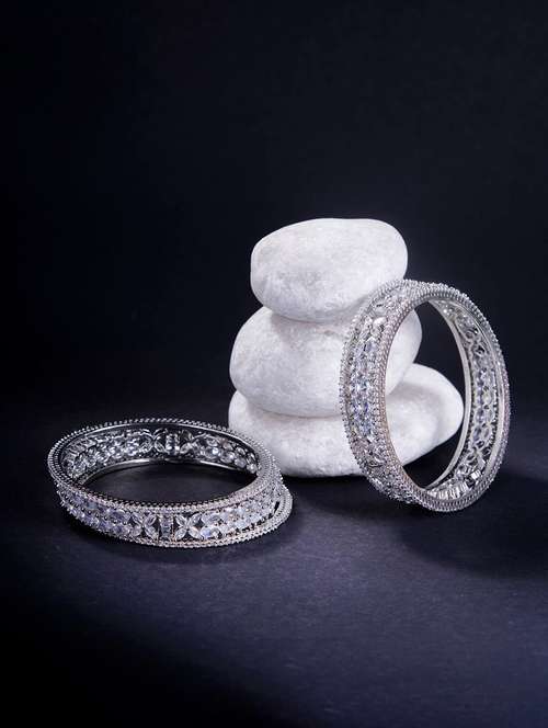 Crystal Fancy Rhodium Bangles (Pack of 6)