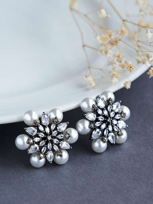 - » opal touch timeless beauty white pearl studded earrings