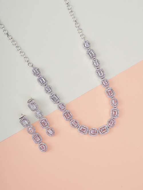 - » women stone studded necklace and earring set