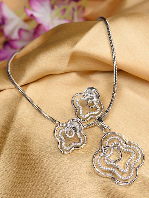 - » white rhodium studded floral design pendant earrings set with chain