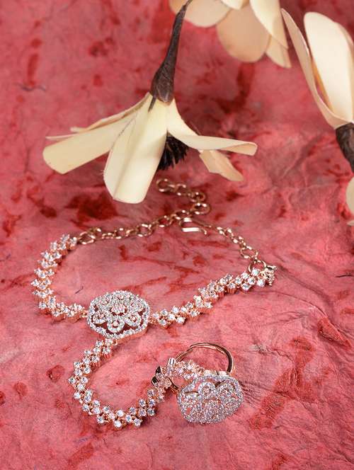 - » rose gold plated ad studded bridal hathphool ring bracelet