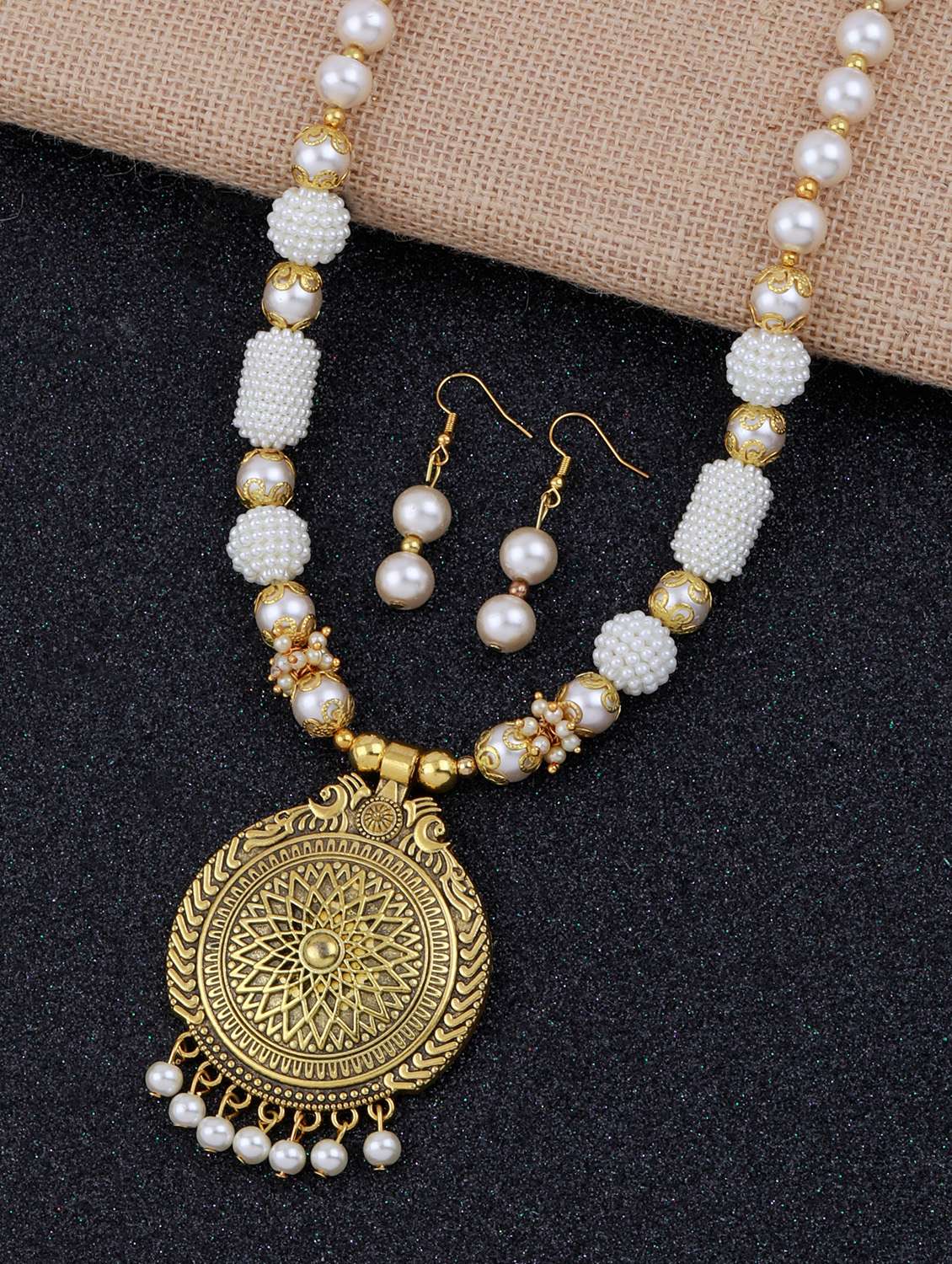 - » white black pearl gold pleated necklace with earring