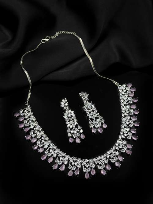 - » sleek elegant silver plated pink ad studded designer necklace set