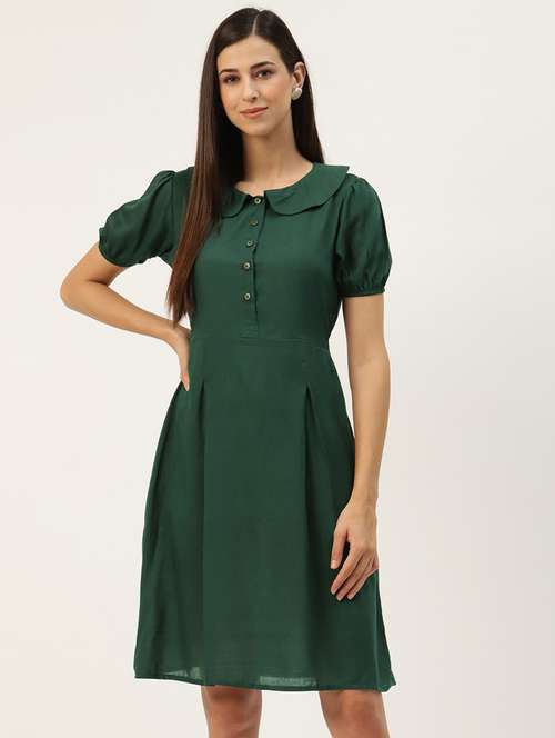 - » women solid puff sleeves a-line dress