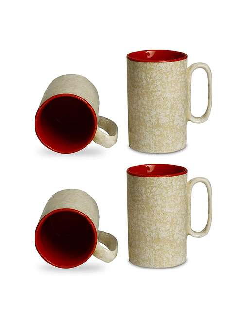 - » caffeine ceramic stoneware handmade white & red milk mug (set of 4)