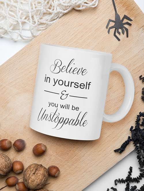 - » kooltech ceramic believe in yourself & you will be unstoppable printed white coffee mug.