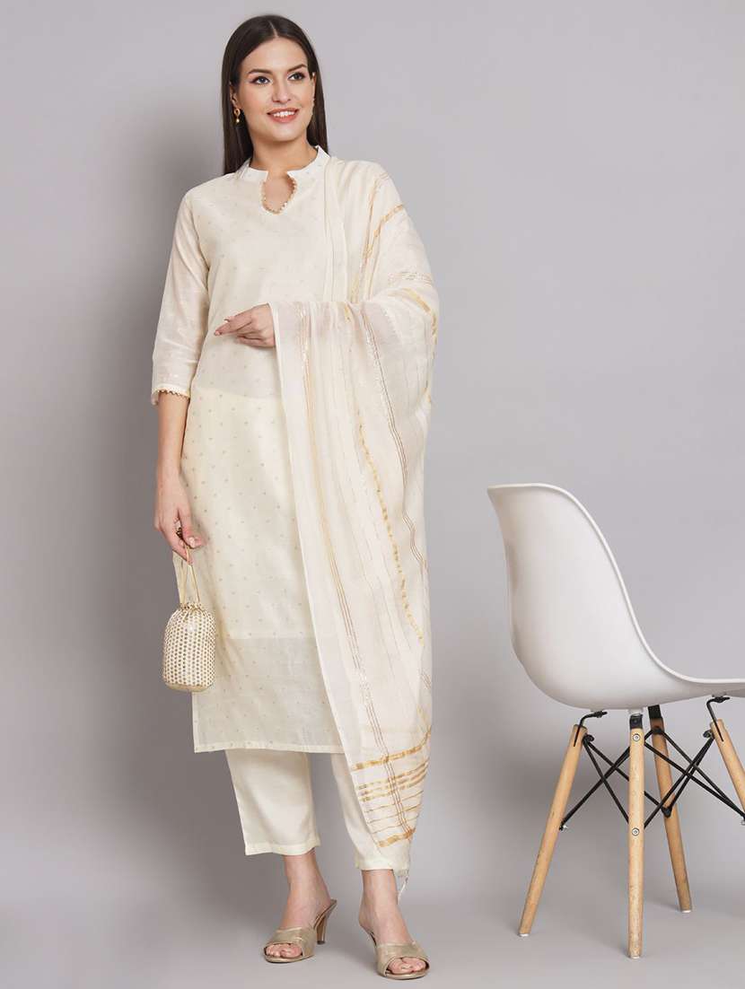 - Find gorgeous sets of ethnic wears in trending designs in white colors suitable for festive wear of occasions.