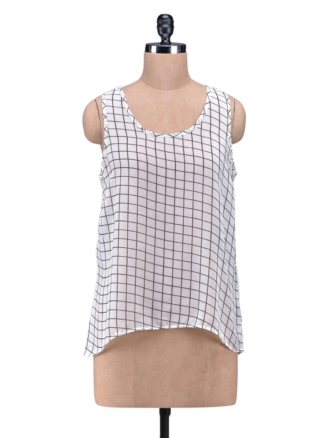 - » white checks sleeveless georgette top
