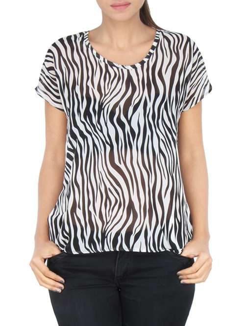 - » white animal printed poly chiffon top