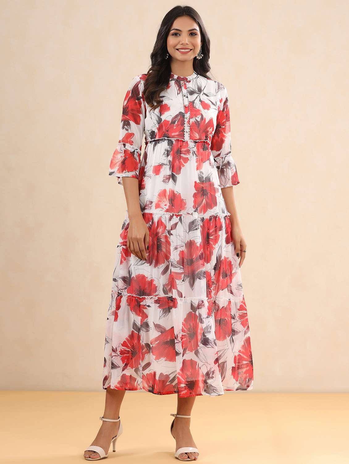 - » white chiffon tiered ethnic dress