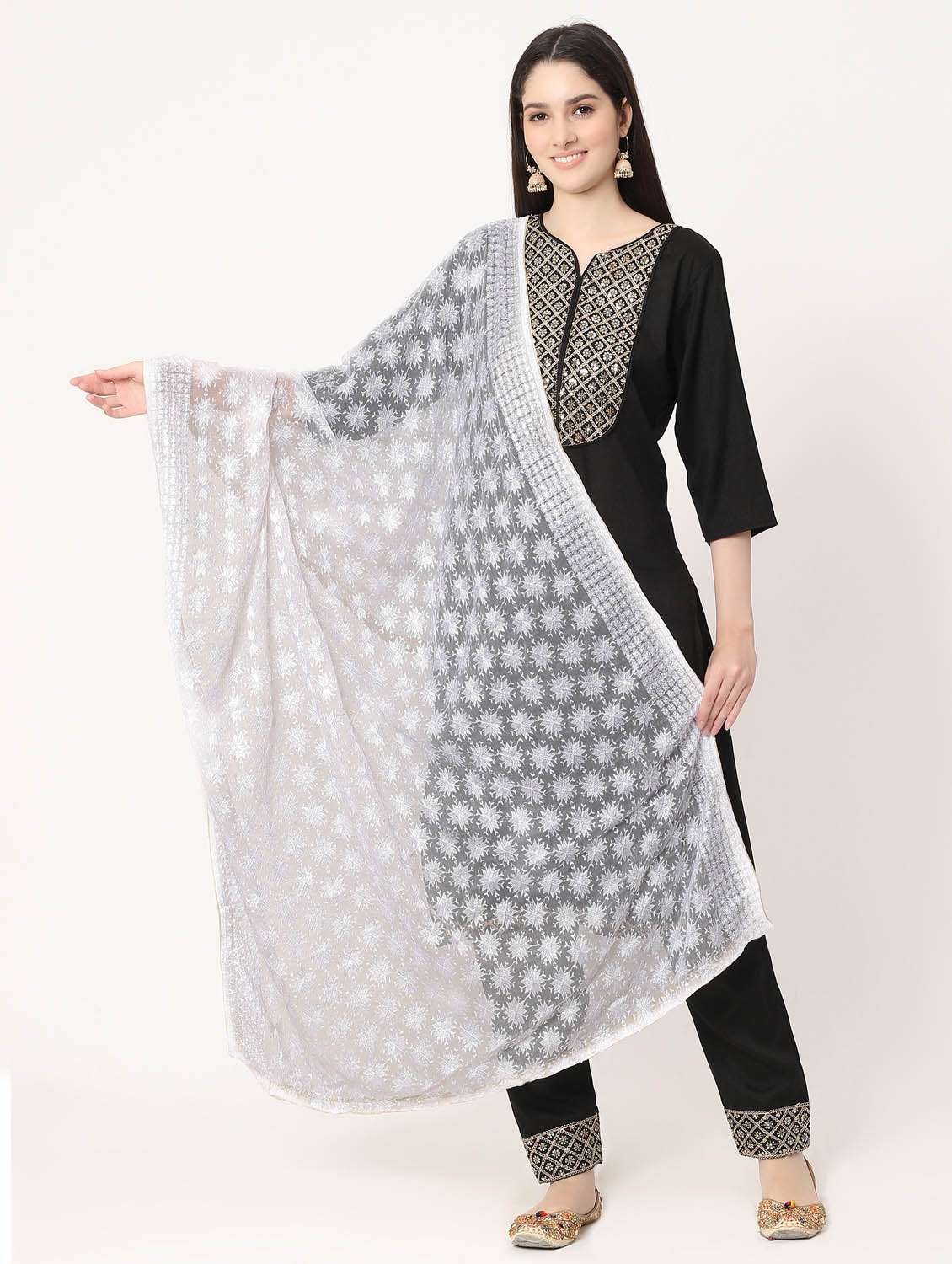 women white phulkari embroidered dupatta  - 20276668 - Very Small Image - 1