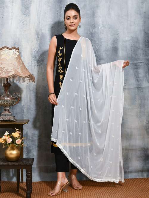 women solid with work embellished dupatta  - 21965795 - Very Small Image - 1