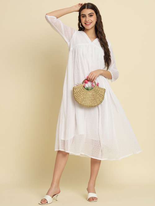 - » women white self design detailed dress