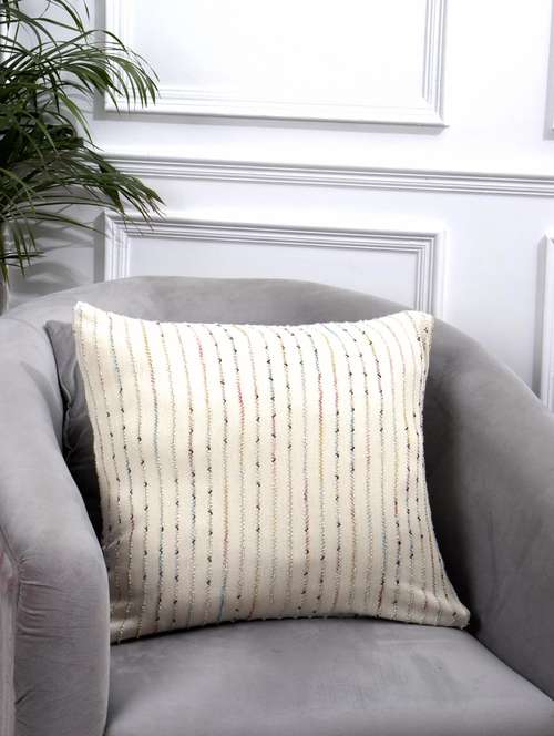 - » white cotton knit with multicolor yarn work cushion cover