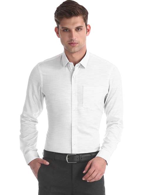 - » white self design formal shirt