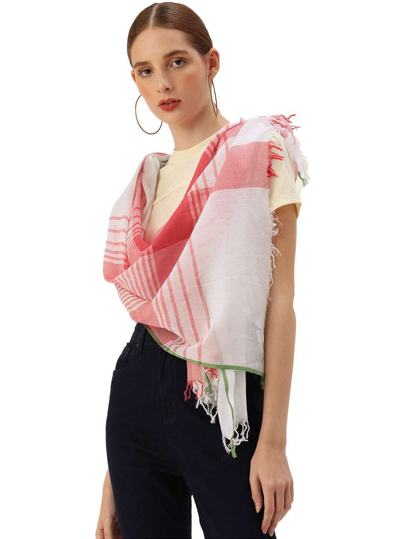 - » handwoven white with red stripes and green selvedge cotton scarf